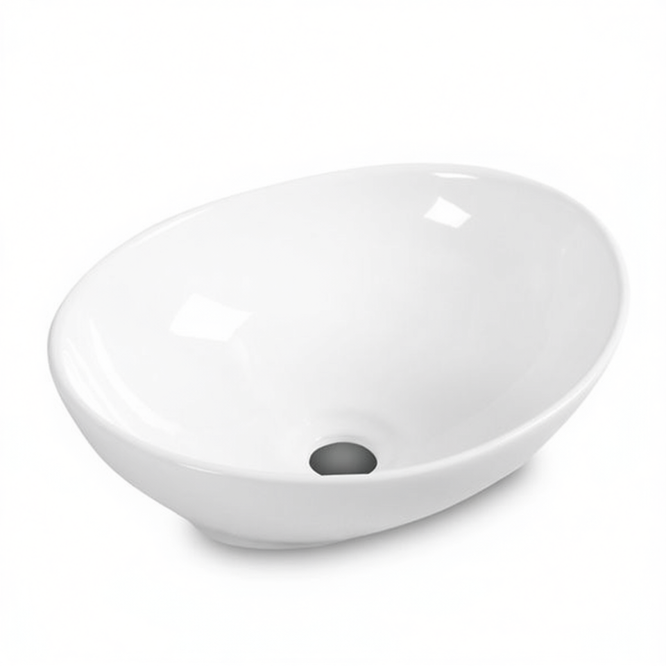 Oval Ceramic Bathroom Sink 16 X 13 X 5.5 Inches Countertop Mounted Space Saving Design Minimalist Style