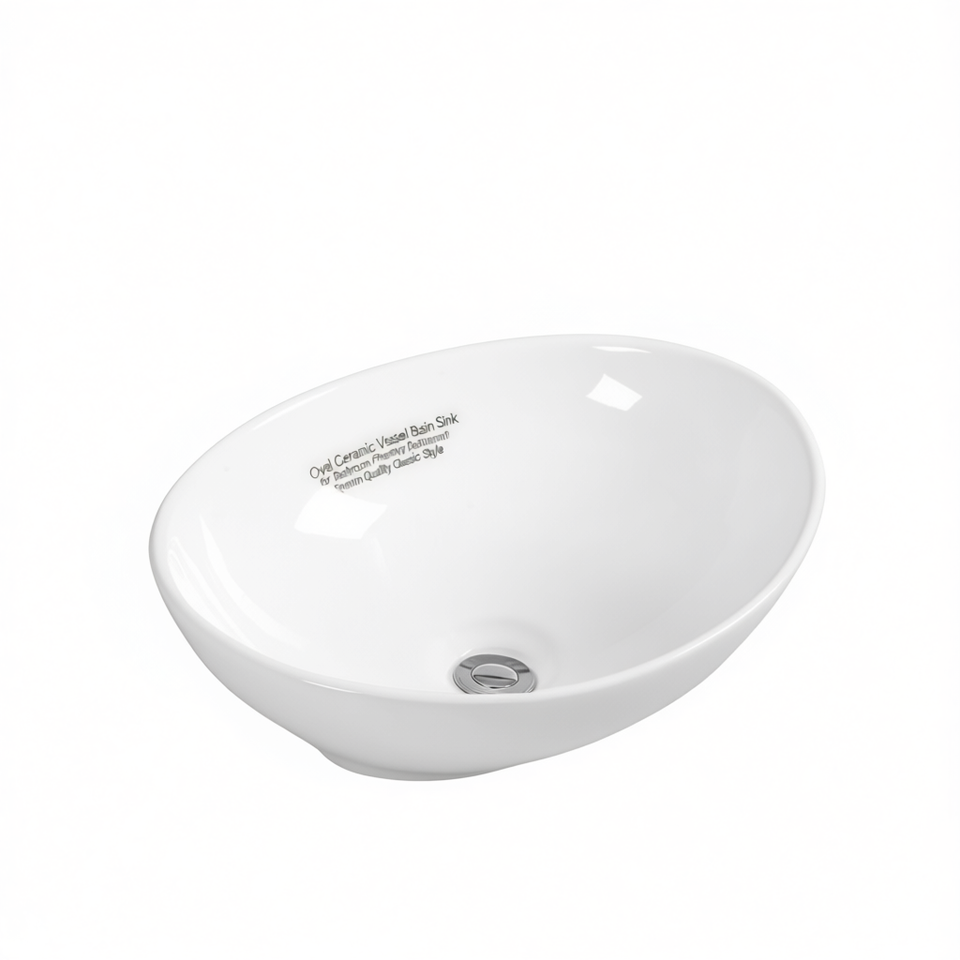 Lavabo Ovale in Ceramica Bianco Lucido Stile Classico per Bagno