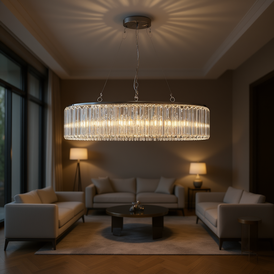 Lampadario a Soffitto in Cristallo Ovale di Grandi Dimensioni, Base E26, Sorgente Luminosa LED 2700K Bianco Caldo, Decorazione per la Casa, Lampadine Non Incluse