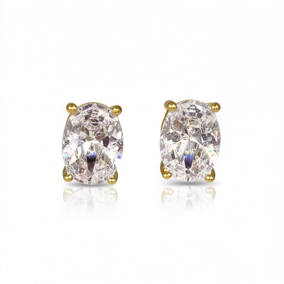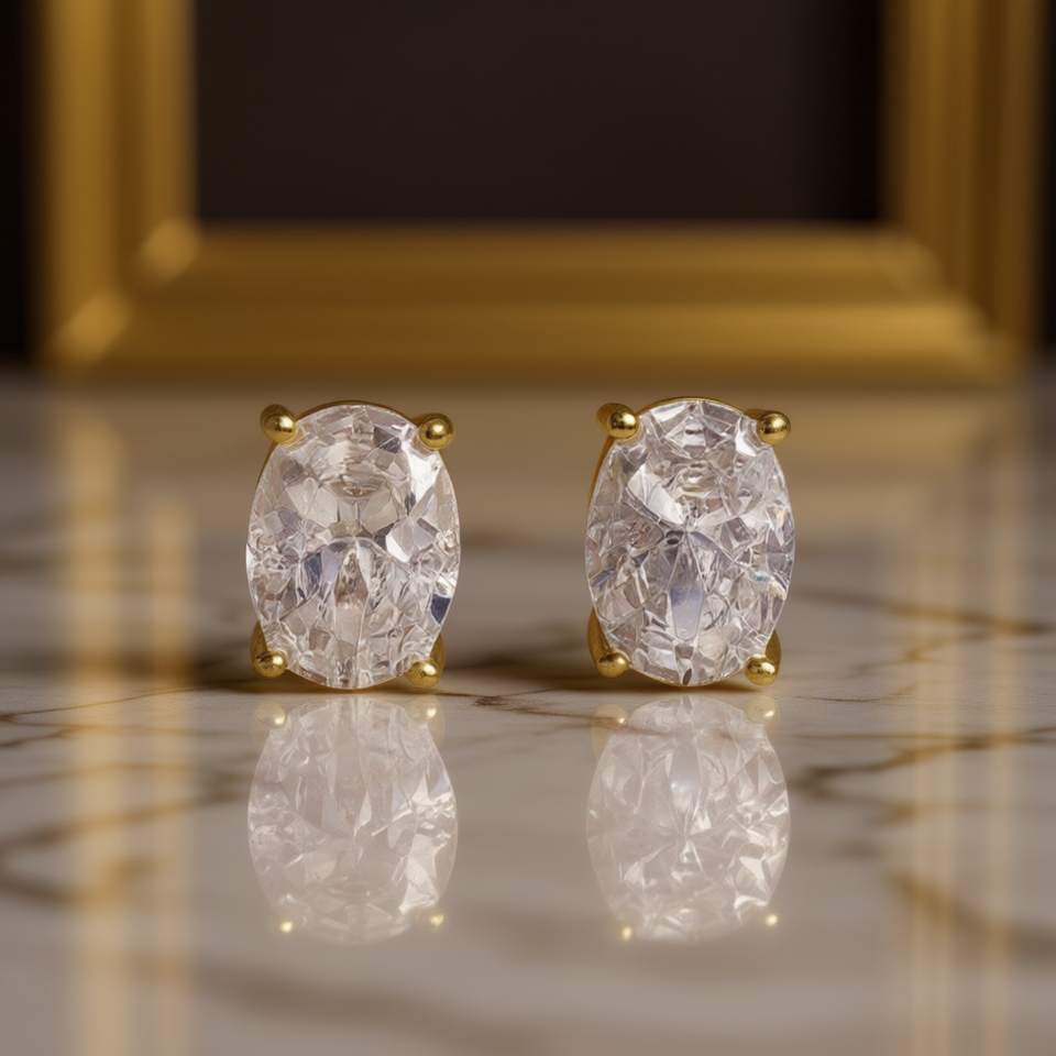 Oval Cut Diamond Earrings in Gold Plated Copper Natural G Color Classic Style for Women's Everyday Wear Model E2287