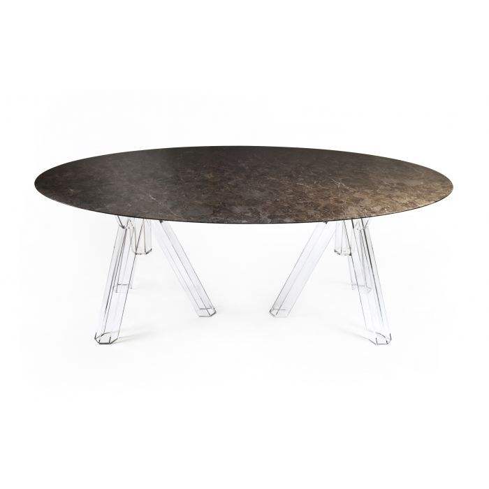 Oval Emperador Marble Table 200x115 Ometto Transparent Base Living Room Side Table Farmhouse Style Set Cement Material Model