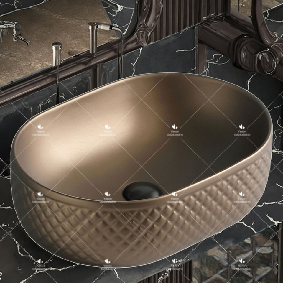 Lavabo da Appoggio in Ceramica di Forma Ovale, Design di Lusso, Facile da Pulire, Effetto Vetro, per Bagno