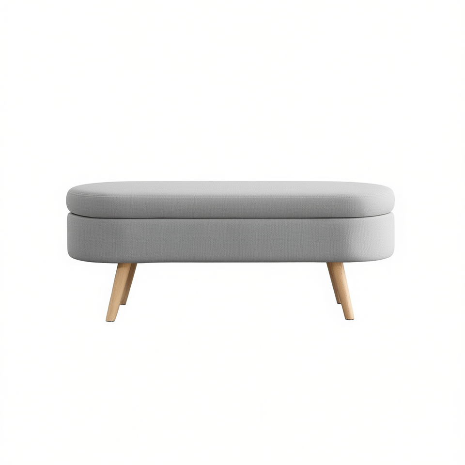 Panca Contenitore Ovale in Tessuto Grigio con Gambe in Legno di Gomma 43.5x16x16 Pollici, Arredamento Moderno Mid-Century per Soggiorno
