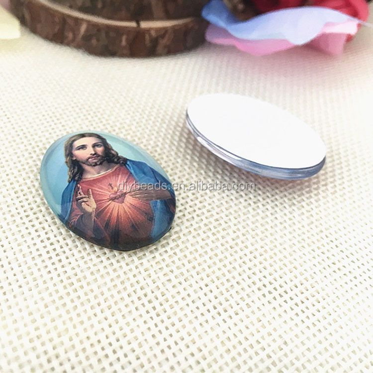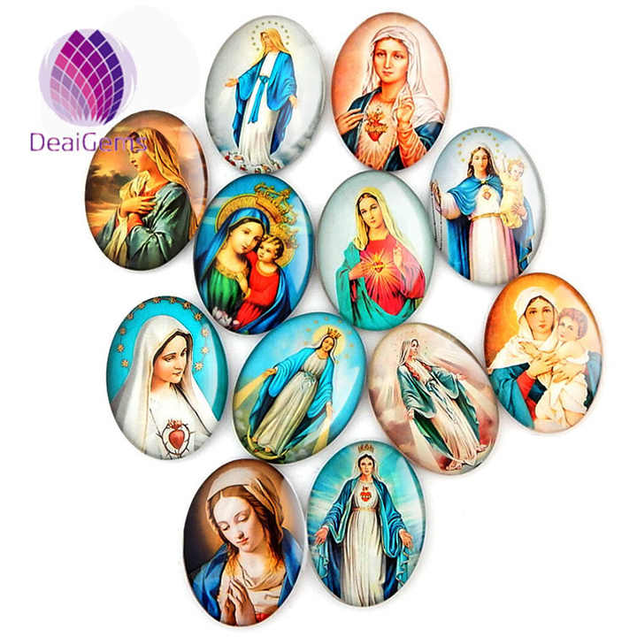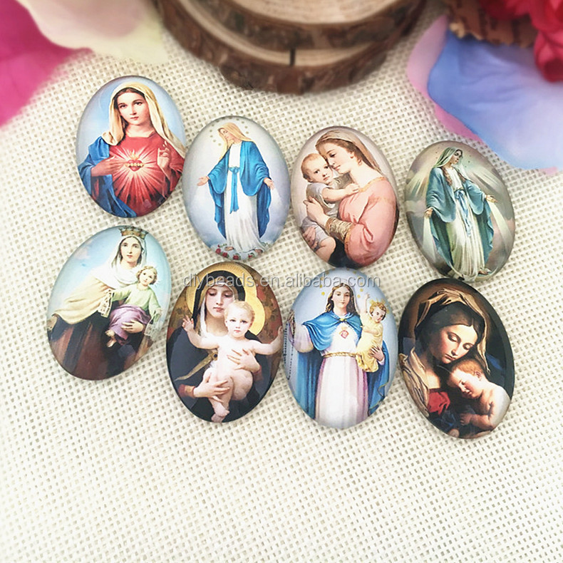 Oval Virgin Mary and Jesus Portraits on Glass Cabochon Jewelry Findings & Components in Different Sizes