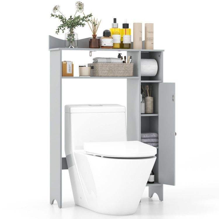 Mobiletto portaoggetti da posizionare sopra il WC con porta carta igienica integrato