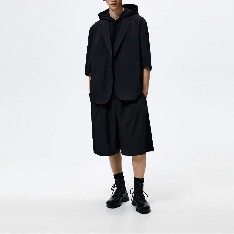 Blazer Oversize con Colletto a Risvolto e Maniche Corte che Cadono Sotto il Gomito con Tasche Laterali e Chiusura a Bottoni per Uomo
