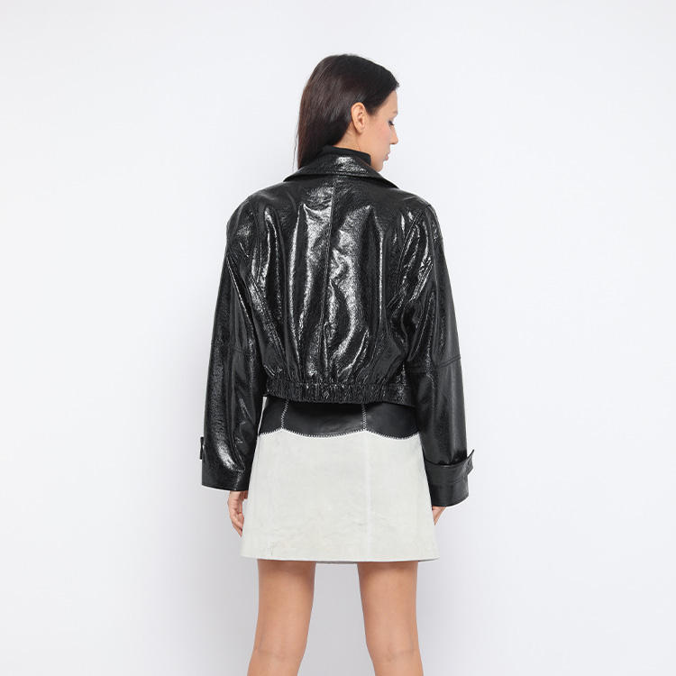 Oversize smalto alla ricerca di moto più il formato delle donne's fresco di stampa in pelle di agnello giacche