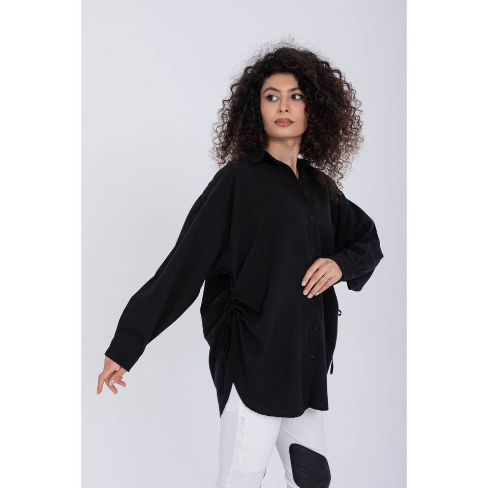Oversize Yandan Büzgülü Kadın Gömlek Siyah Women's Oversize Blouses & Shirts