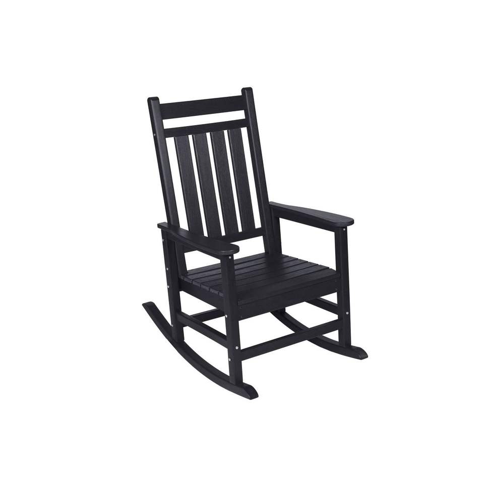 Sedia a dondolo oversize resistente alle intemperie con texture legno per adulti, ideale per portico, prato e giardino