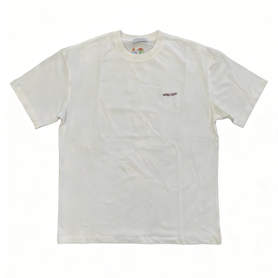 Oversized Beige Cotton T-Shirt - Minimalist Text Graphic Print Casual Daily Style Top