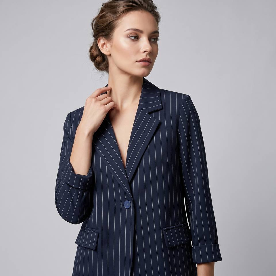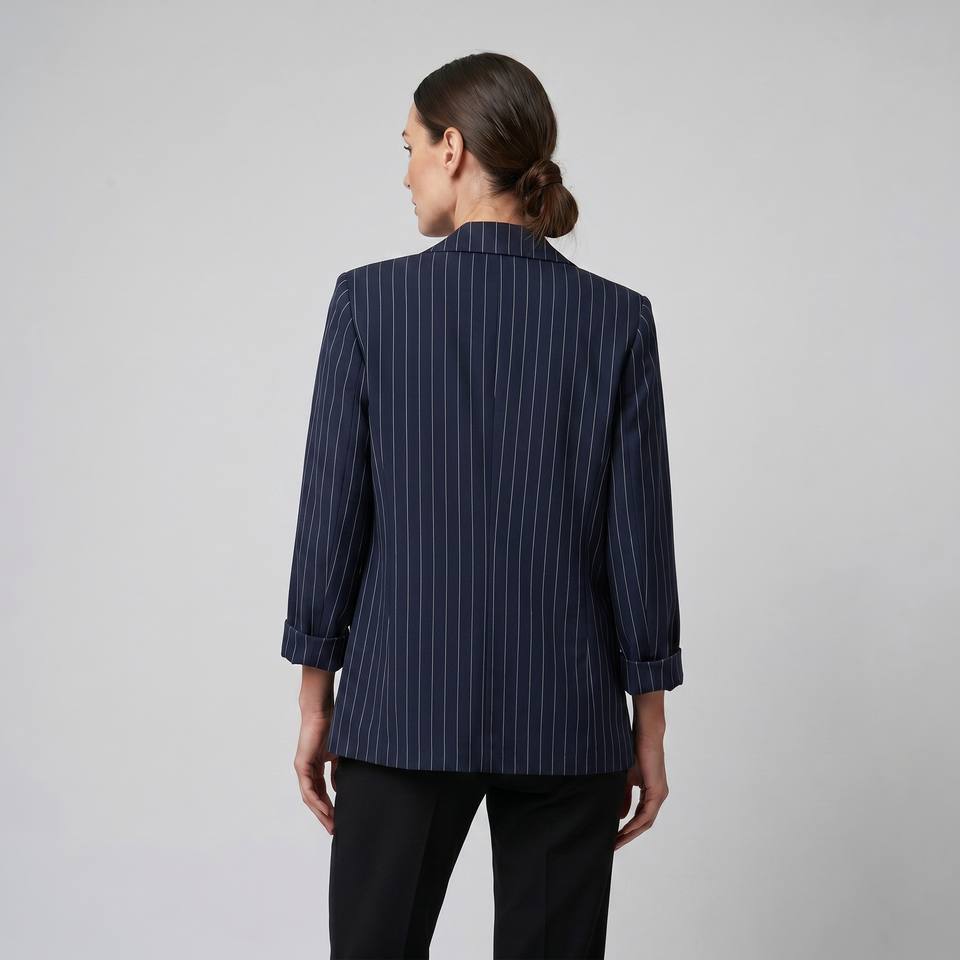 Blazer Oversize con Bottoni e Sottili Righe