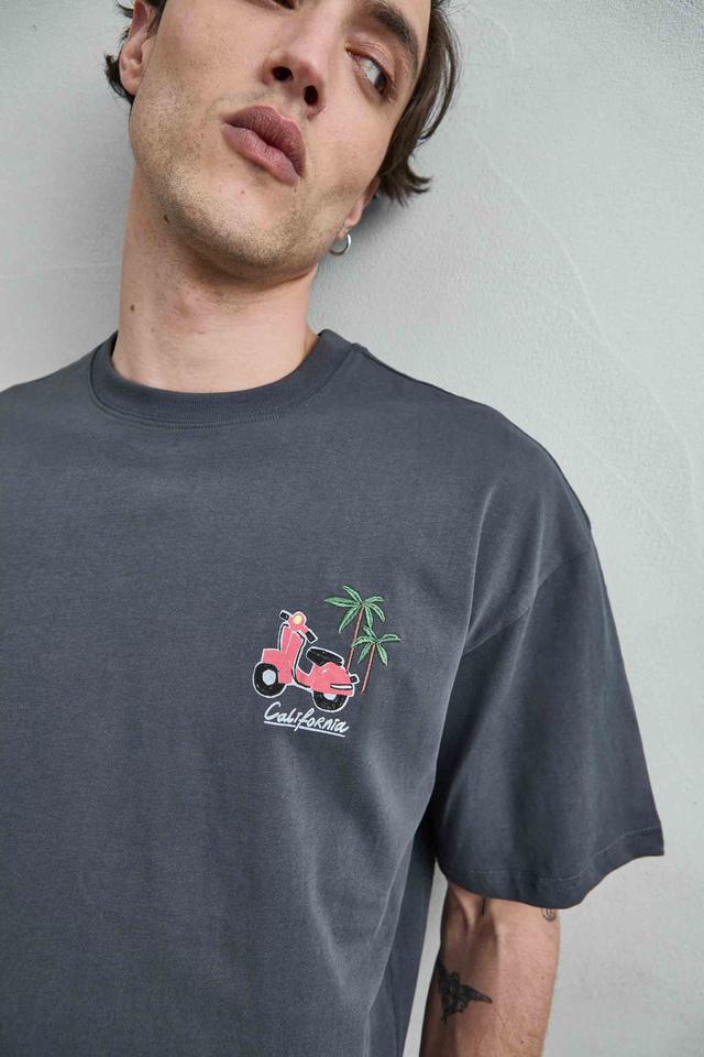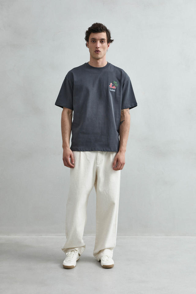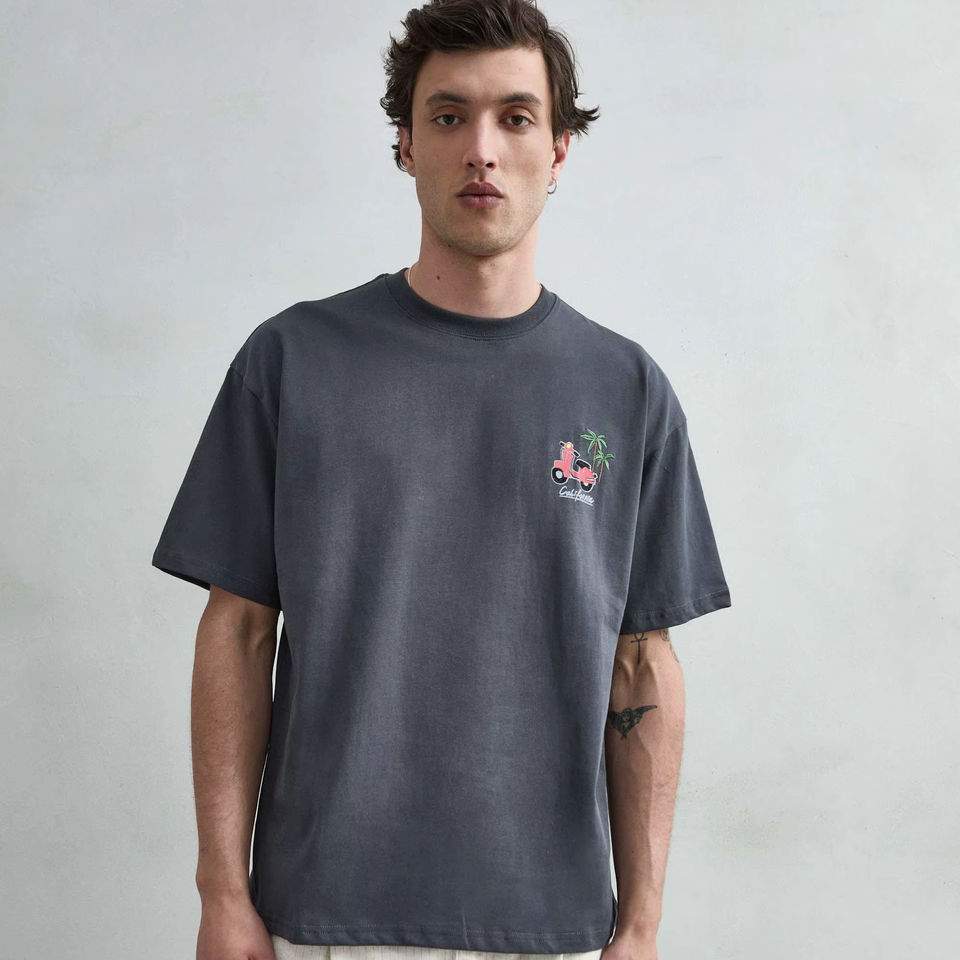 Dark Gray 100% Cotton Short Sleeve T-Shirt Regular Fit Floral Pattern Casual Vacation Style Top 240 Grams Anti-Pilling