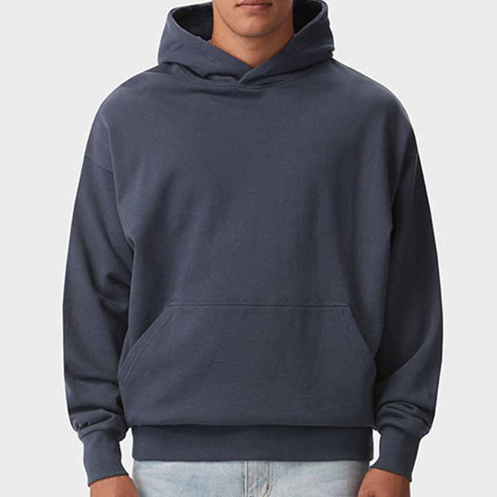 Oversized Dark Gray Fleece Hoodie with Ribbed Hem and Cuffs Casual Loose Fit Front and Back View Heavyweight Custom Sweatshirt