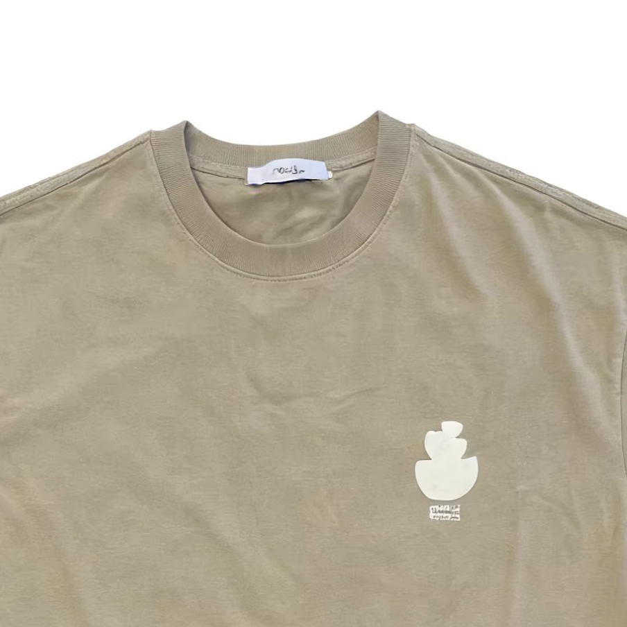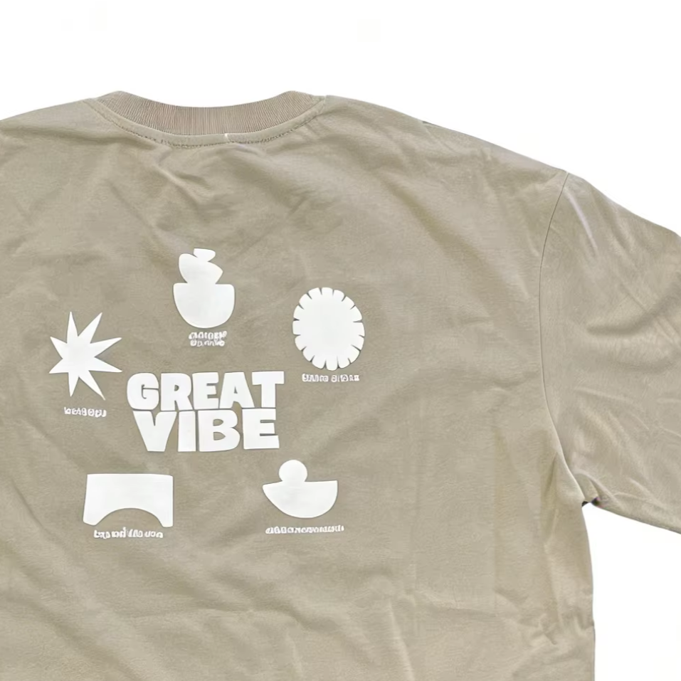 Oversized Khaki Cotton T-Shirt - "Great Vibe" Graphic Print Trendy Casual Fashion Style Top