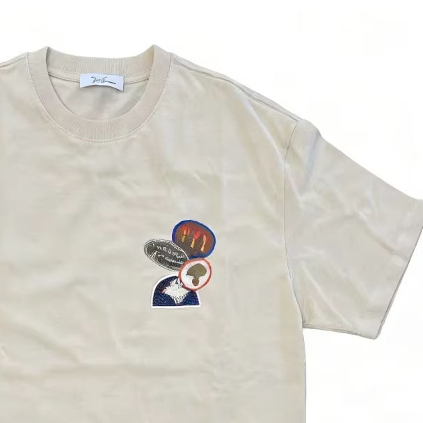 Oversized Light Beige Cotton T-Shirt - Creative Cartoon Graphic Print Casual Fashion Style Top