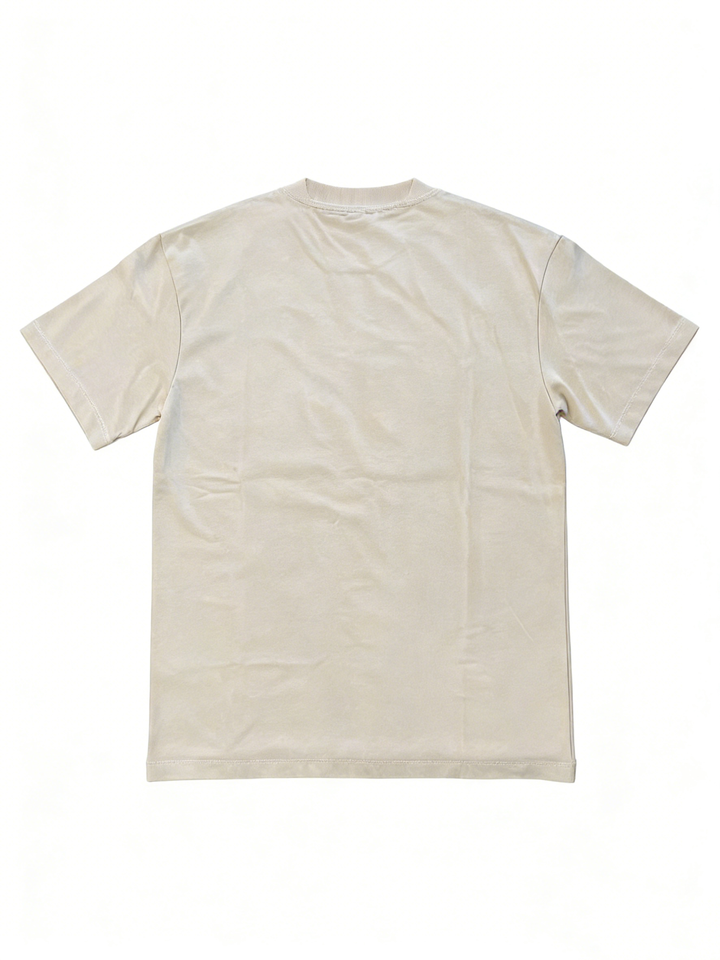 T-shirt Oversize in Cotone Beige Chiaro - Top Casual con Stampa Grafica Creativa a Frutta