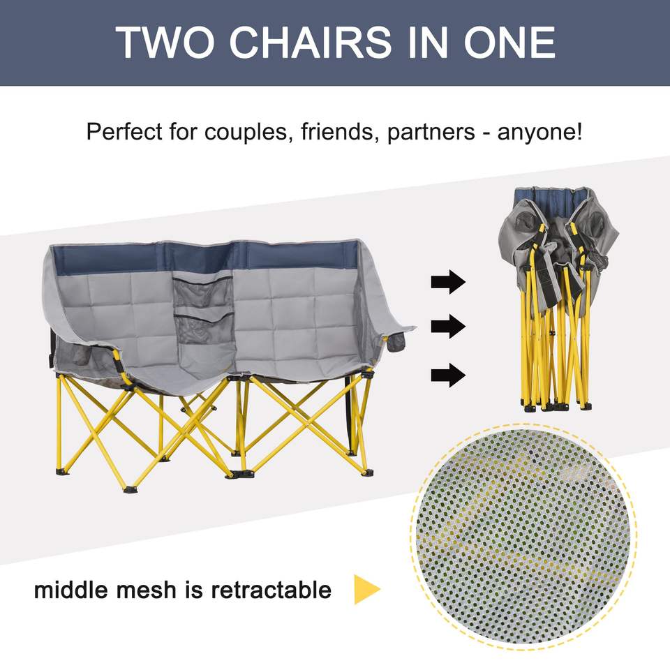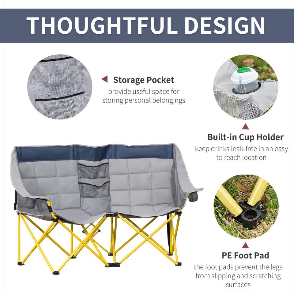 Sedia da Campeggio Pieghevole Stile Loveseat Oversize con Borsa per il Trasporto, per Spiaggia, Picnic e Escursioni, con Portabicchieri