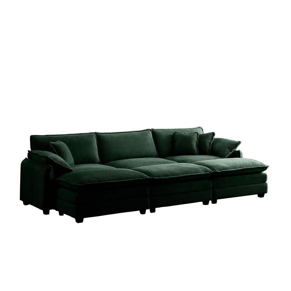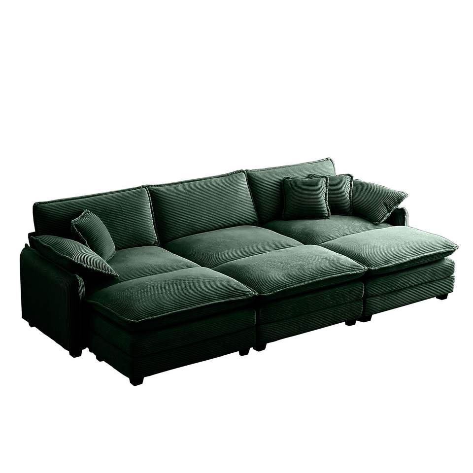 Divano Letto Modulare Oversize in Velluto a Coste Verde con 3 Pouf e Poggiapiedi, Design a 3 Posti per Lavoro e Riposo