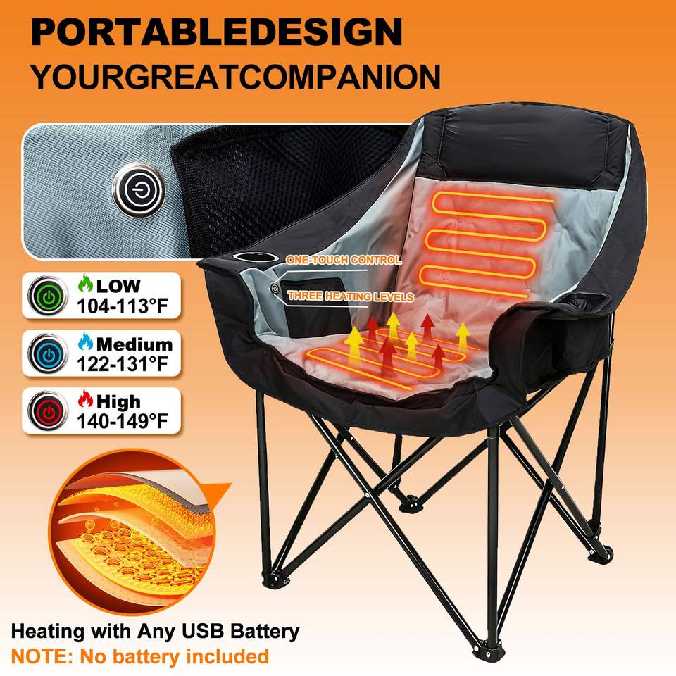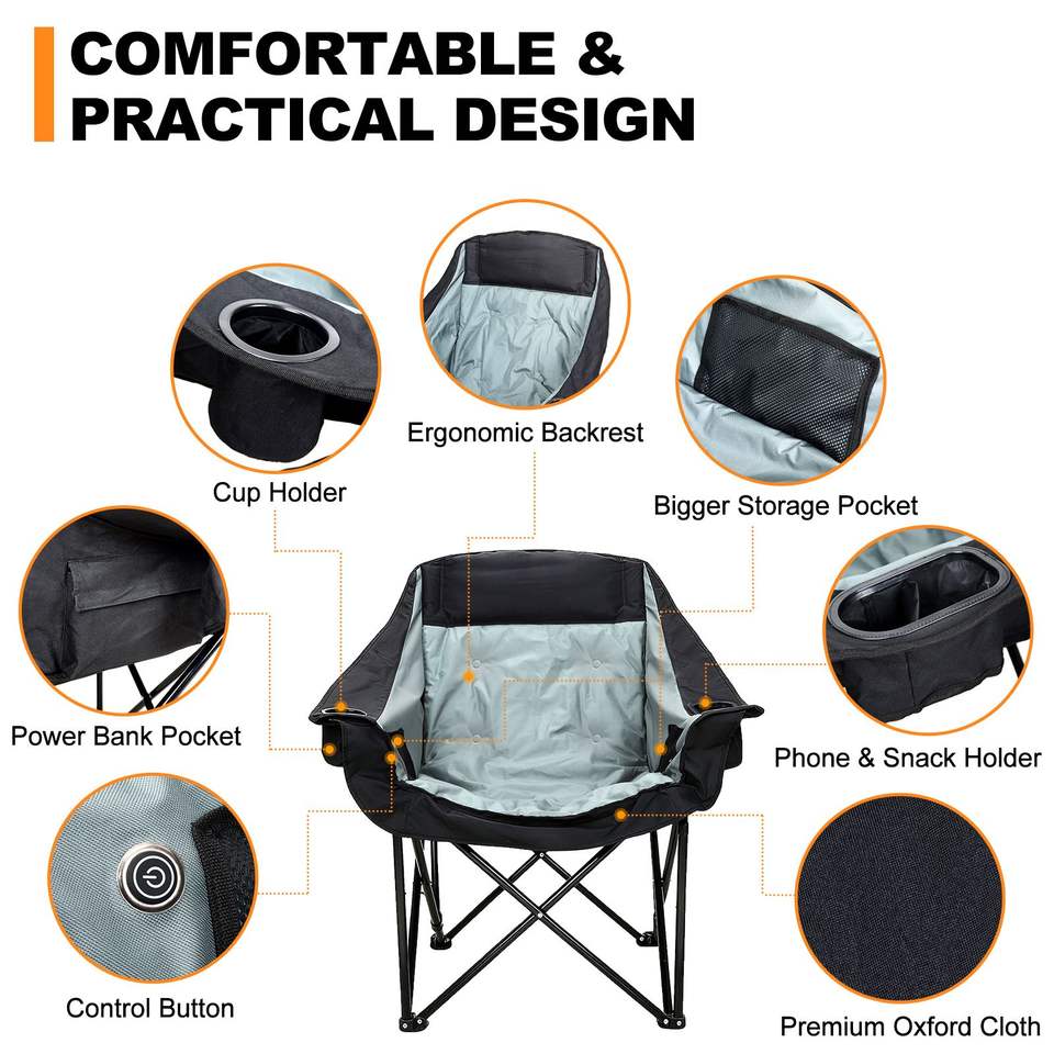 Sedia da Campeggio Riscaldata Pieghevole Oversize, 3 Livelli di Calore, Sedia Lounge da Patio, Design Pieghevole a Forma di Luna