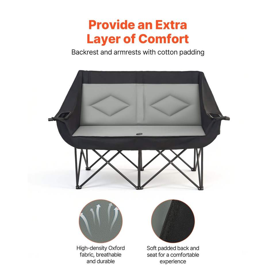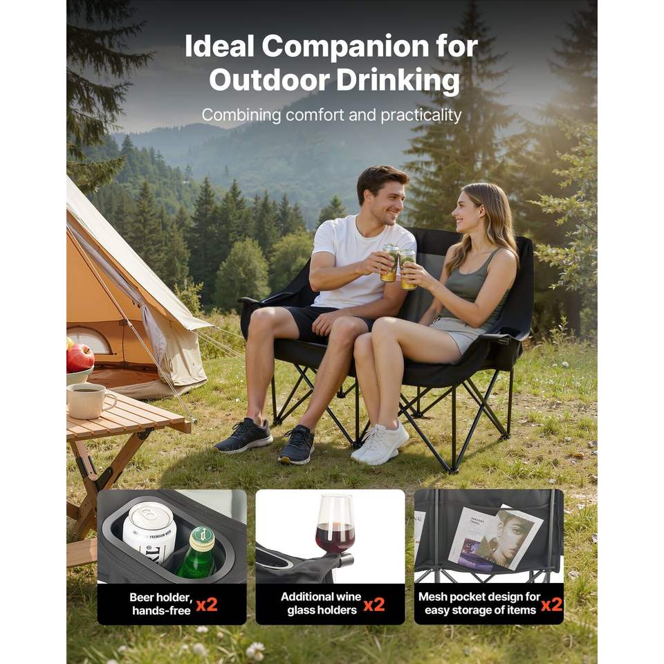 Sedia da Campeggio Oversize per Due Persone, Capacità 660 Libbre, con Doppio Portabicchieri e Porta Calice, Sedia Pieghevole Doppia