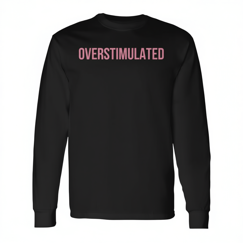 T-shirt a maniche lunghe Overstimulated Mom, girocollo nero, taglia adulto