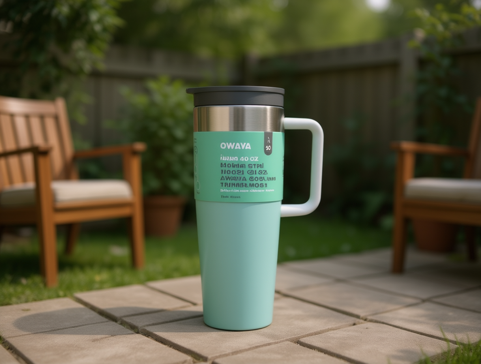 Owaya Stainless Steel Thermos 40 Oz Vacuum Insulated Travel Mug With Lid Minimalist Design