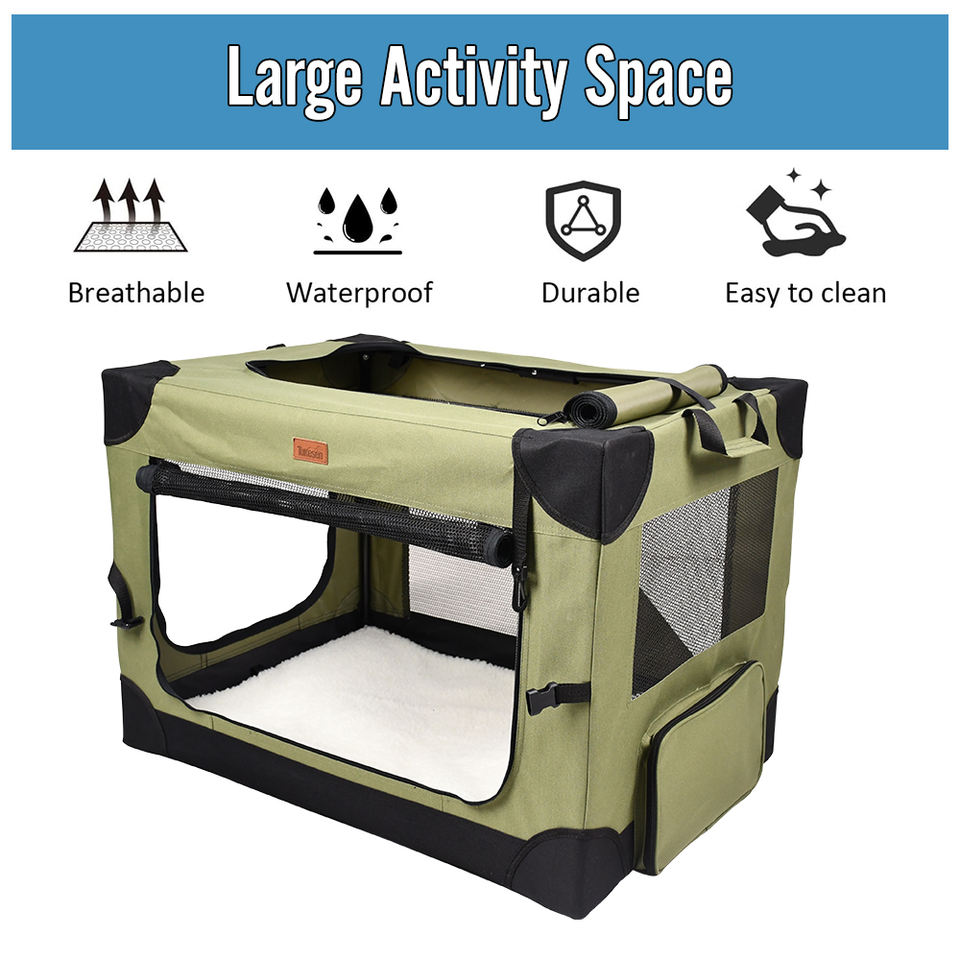 Oxford Fabric Dog Soft Crate New Classic Style Foldable Pet Carrier Kennel with Zipper Closure Breathable Pattern