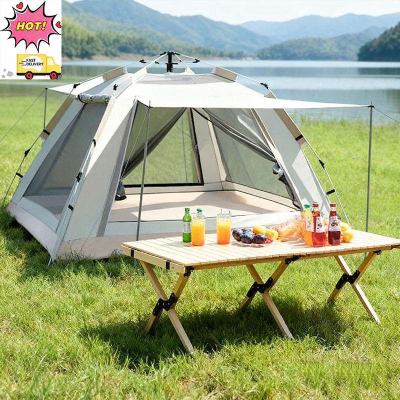 Tenda da Campeggio Oxford per 3-4 Persone, Portatile e Pieghevole, Apertura Rapida Automatica, Set Completo di Attrezzatura per Esterni e Spiaggia, Una Camera da Letto