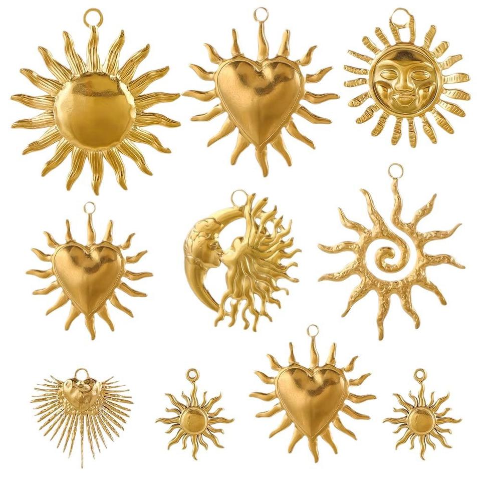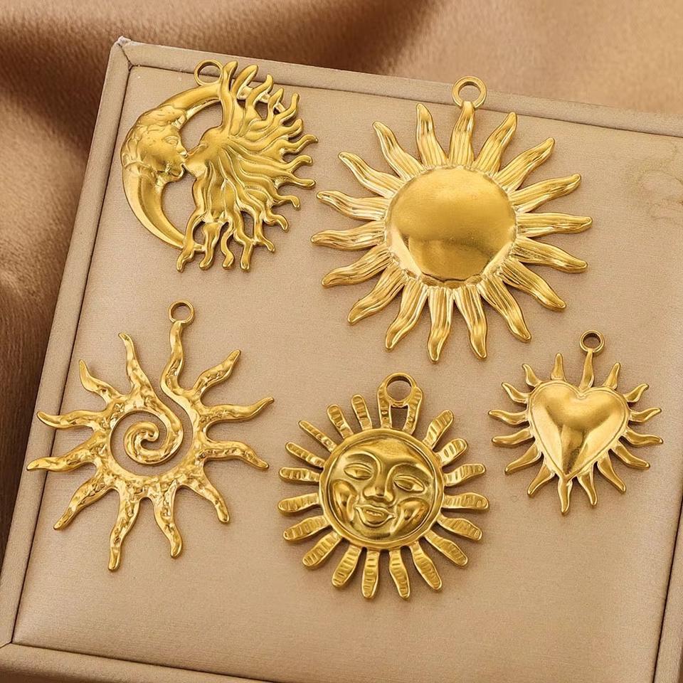 Ciondoli in acciaio inossidabile placcato oro 18 carati P262 con smalto a forma di sole e cuore per creazione gioielli, accessori fai da te per collane e bracciali