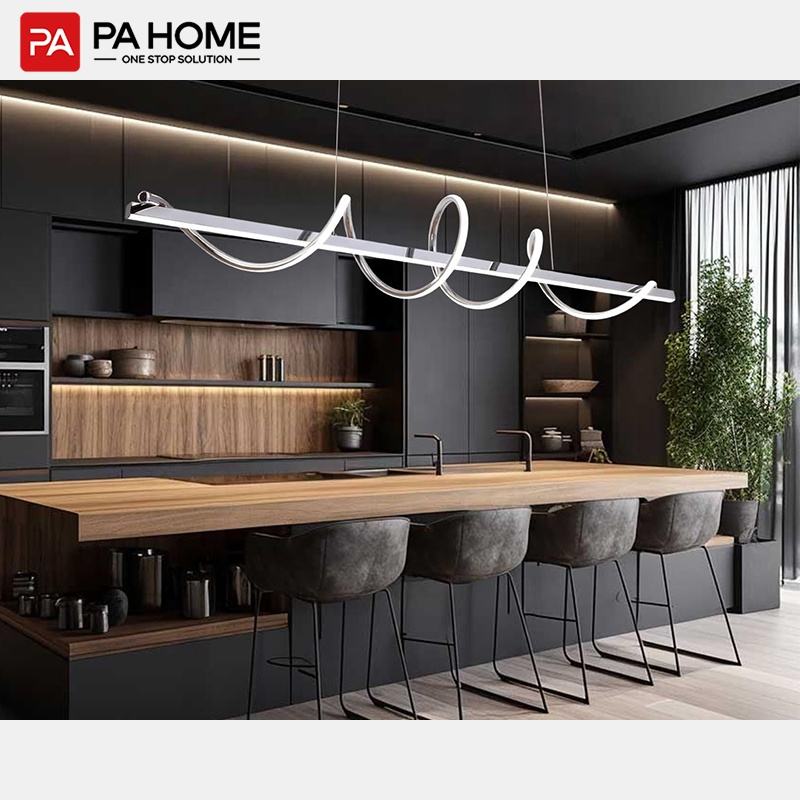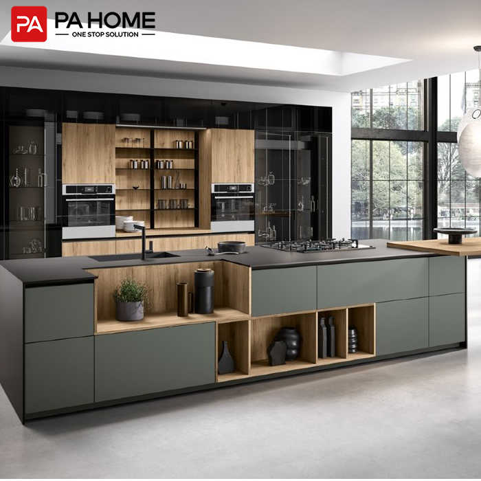 PA Foshan Custom commerciale completo armadio in legno Set cucina intelligente isola con tavolo di stoccaggio