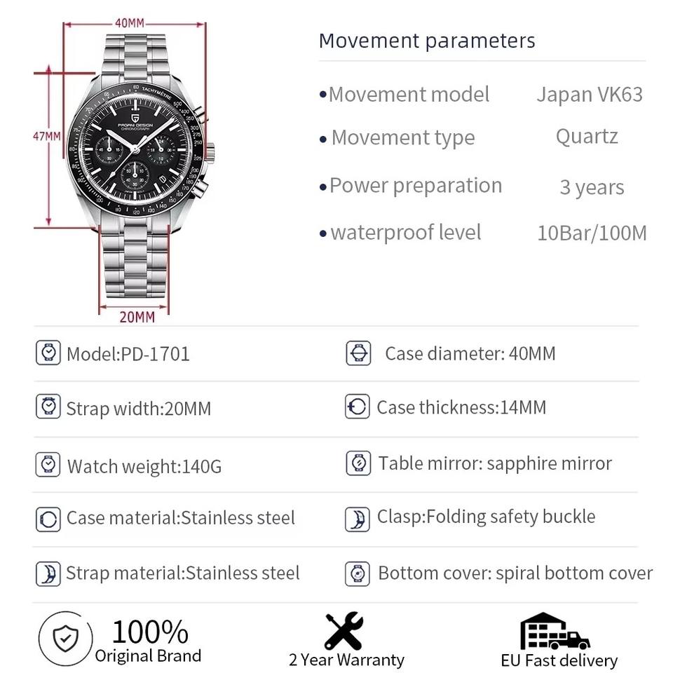 PAGANI DESIGN 2025 New Moon Men's Watches Luxury Quartz Watch Man Chronograph VK63 Men Gifts AR Sapphire Mirror Luminous Clock