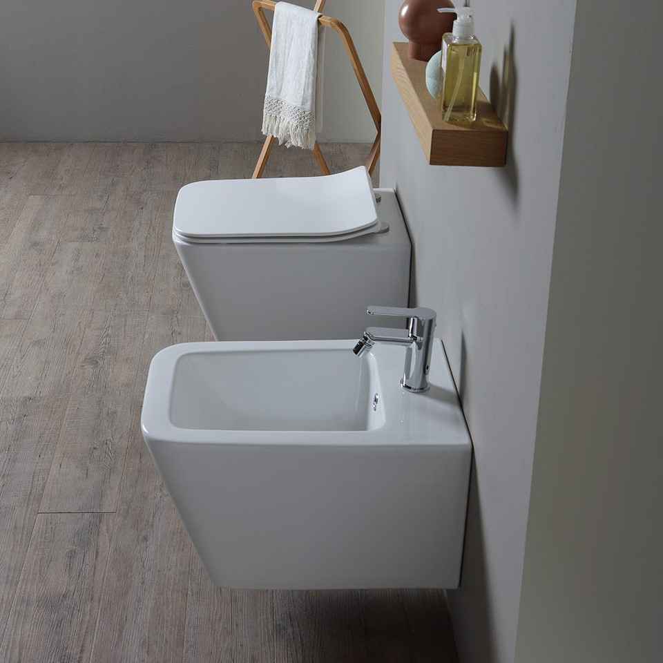 Coppia di sanitari da bagno sospesi in ceramica senza bordo RIGA