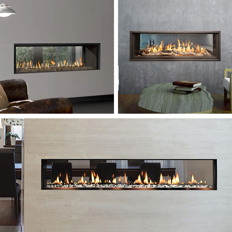 PANSEE Modern Two-Sided Glass Siphon Design Steel Gas Fireplace Insert Remote Control for Villa Apartment Use Real Flame Indoor