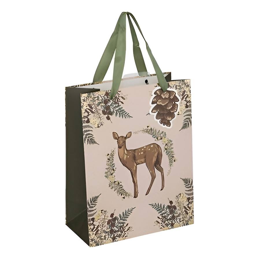PAPER BAG WITH DEER AND GREEN HANDLES 17.8X9.8 H. 22.9CM