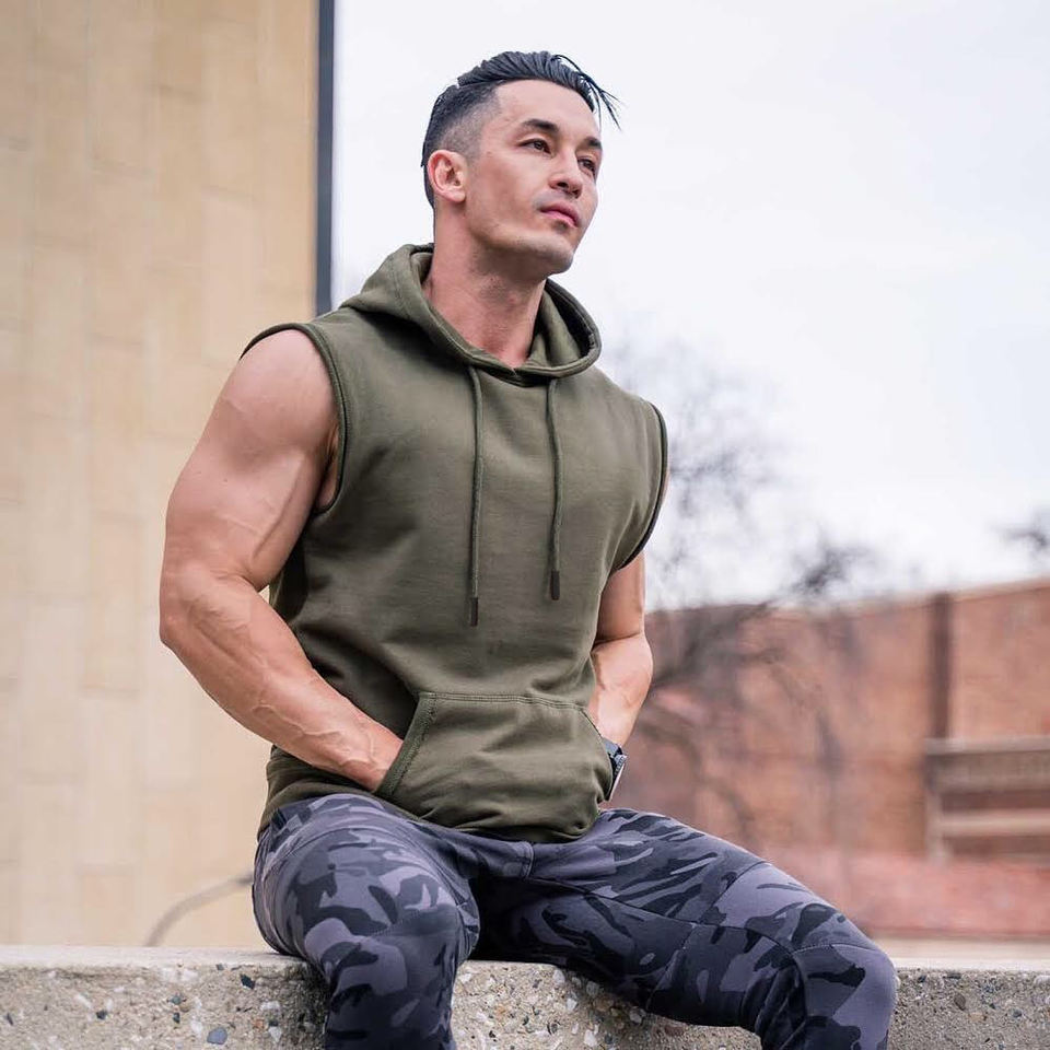 Felpa con cappuccio da palestra da uomo, giacca da palestra, palestra senza maniche