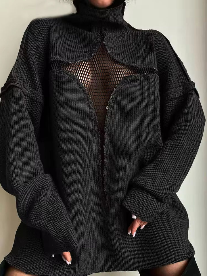 PASUXI Fashion Streetwear Lady Casual Pullover Styles Spring Fall Winter Mesh Hollow Out Knitted Sweater Women'S Sweaters