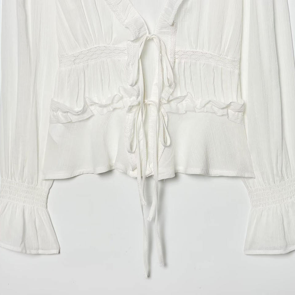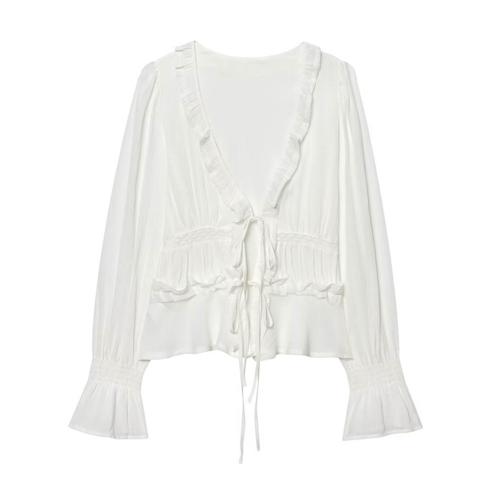PB&ZA Donna 2026 Primavera Nuova Moda Camicette in Tulle Decorativo Laminato Ricamato Vintage a Maniche Lunghe Blusas Chic da Donna