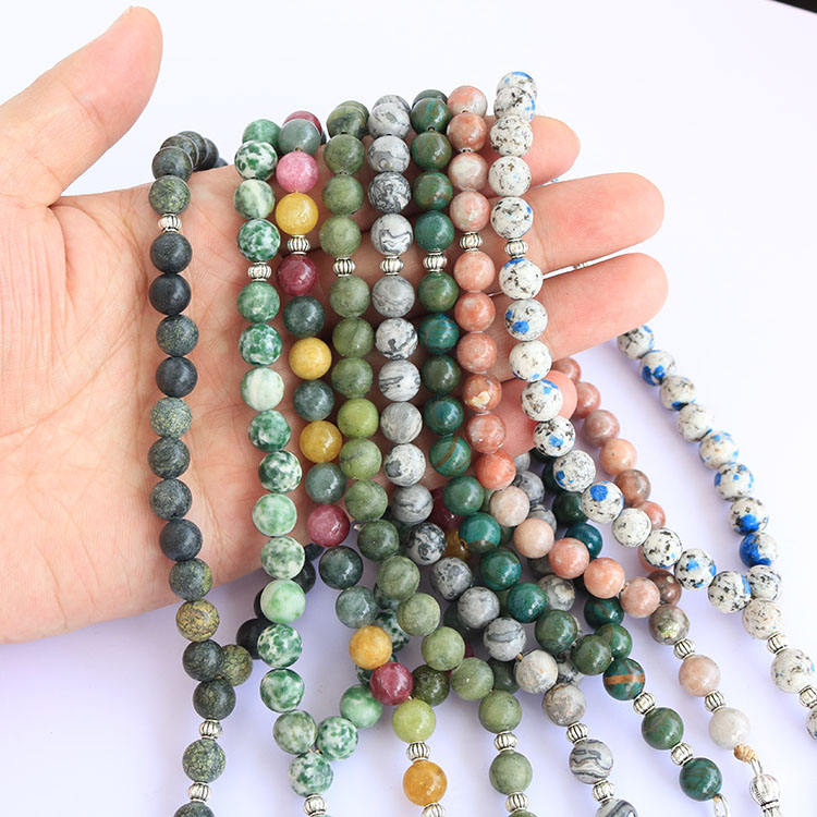 PBB1096 Rosario Islamico Turco Fatto a Mano con 33 Perle in Pietra, Tesbih Misbaha Tasbeeh, Sibha con Perle Rotonde da 8mm