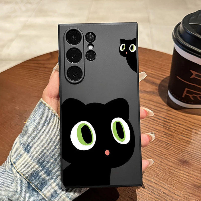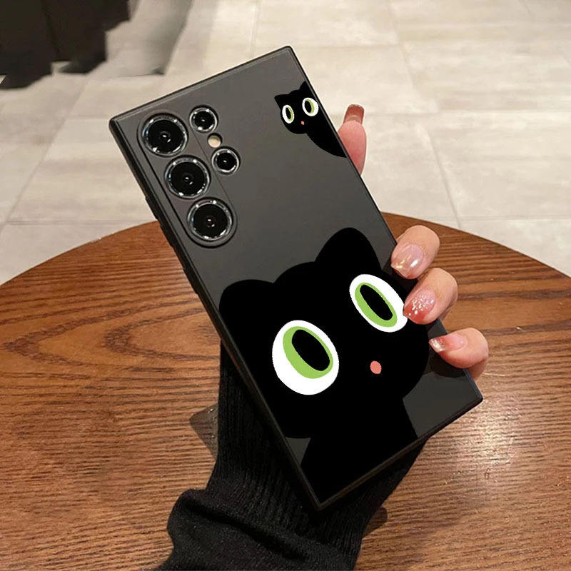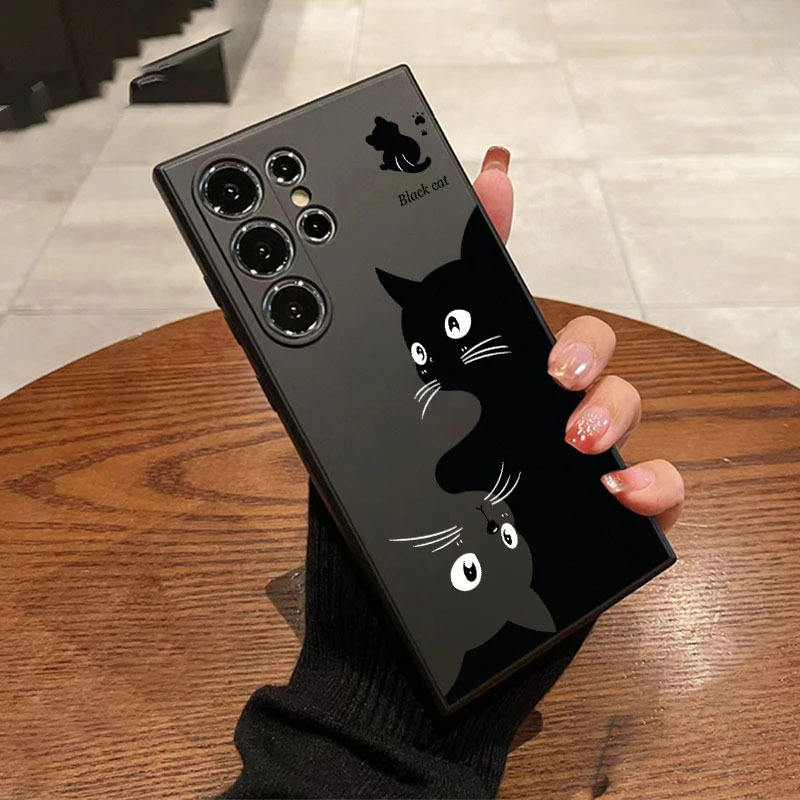 PC TPU Shockproof Mobile Phone Cover Case for Samsung S25 24 23 Plus Mobile Phone Case Cute Black White Cat