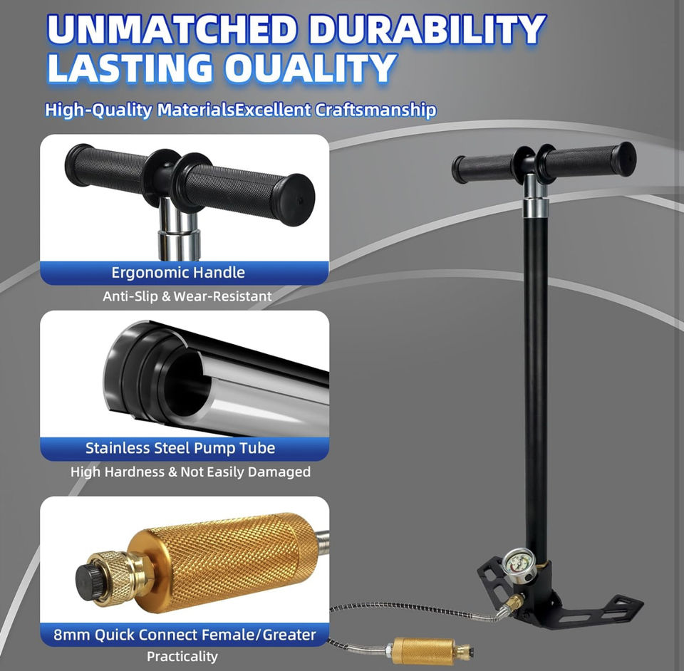 Pompa Manuale a Quattro Livelli PCP 30mpa 4500psi Adatta per Pistole ad Aria Compressa PCP, Paintball, Bombole HPA, Pneumatici e Fucili