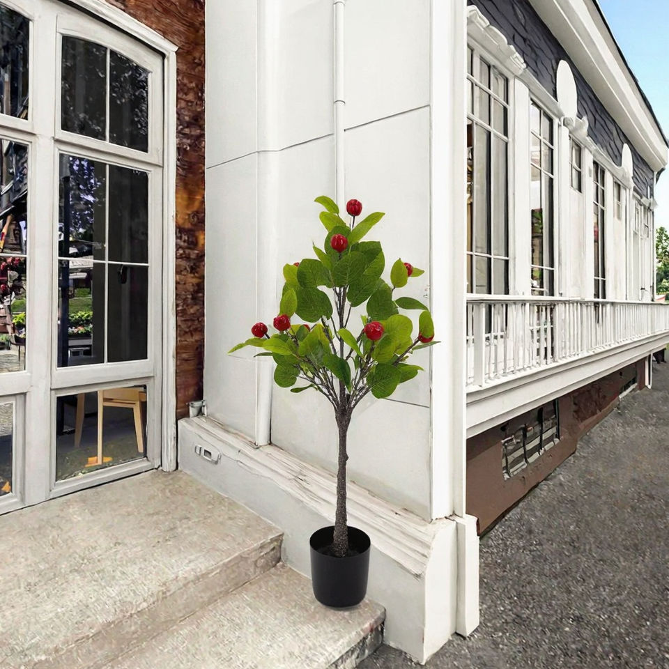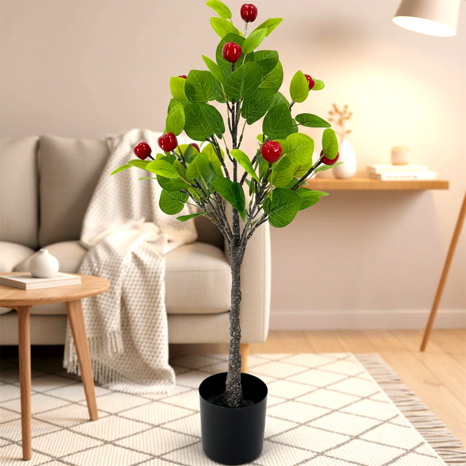 Piante verdi PE piccole artificiali Multi frutta rossa piante in vaso con foglie di eucalipto casa soggiorno decorazione Hotel ufficio