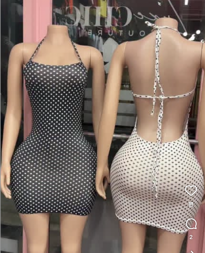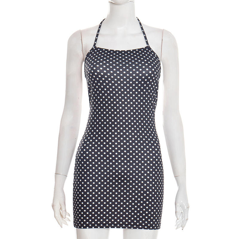 PEEQI J26DS002 Nuovi Mini Abiti Sexy Primaverili per Donne, Vestito a Pois con Collo Halter Senza Maniche e Lacci, Abito alla Moda con Schiena Scoperta