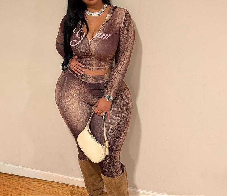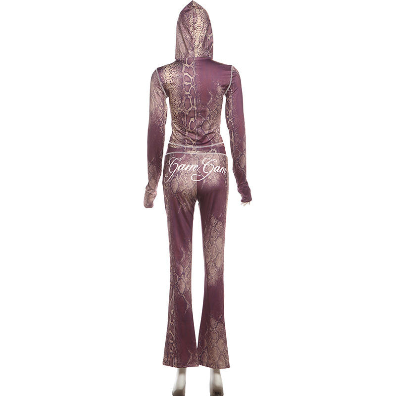 PEEQI K25S86708 Winter 2025 New Women Two Piece Pants Set Slim Hooded Cardigan Top Printed Long Pants 2 Piece Set Women Outfit