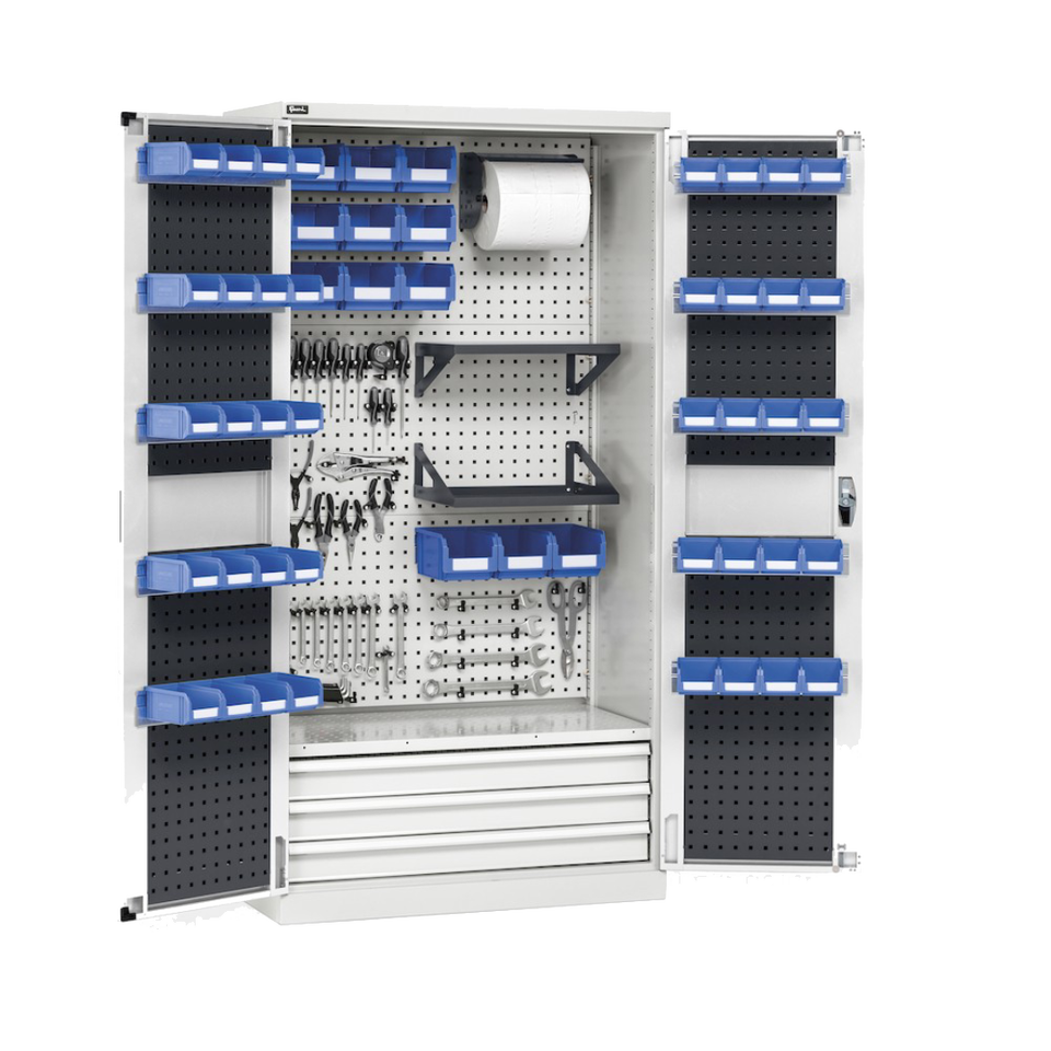 PERFOM140 porta attrezzi in metallo resistente porte incernierate 1023mm di larghezza 555mm di profondità 2000mm di altezza per accessori di archiviazione per officina