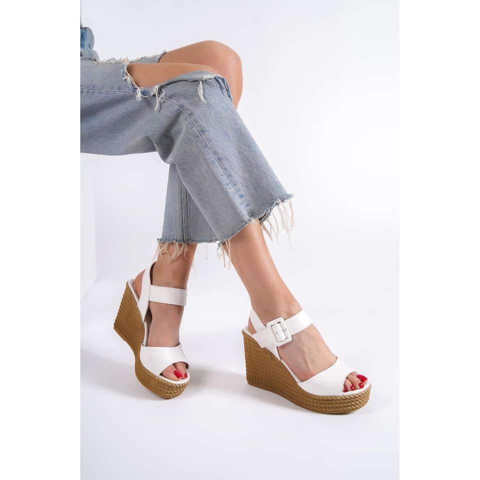 PERLA fibbia tacchi elastici zeppa suola ortopedica paglia Look sandali da donna KT bianco
