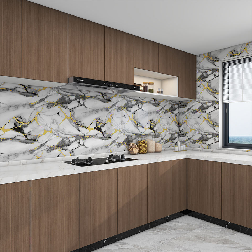 PET Glossy Vinyl Marble Wallpaper Self Adhesive Pattern Sticker Pvc Rolls Wall Coating for Home Decor Films Kitchen Bathroom