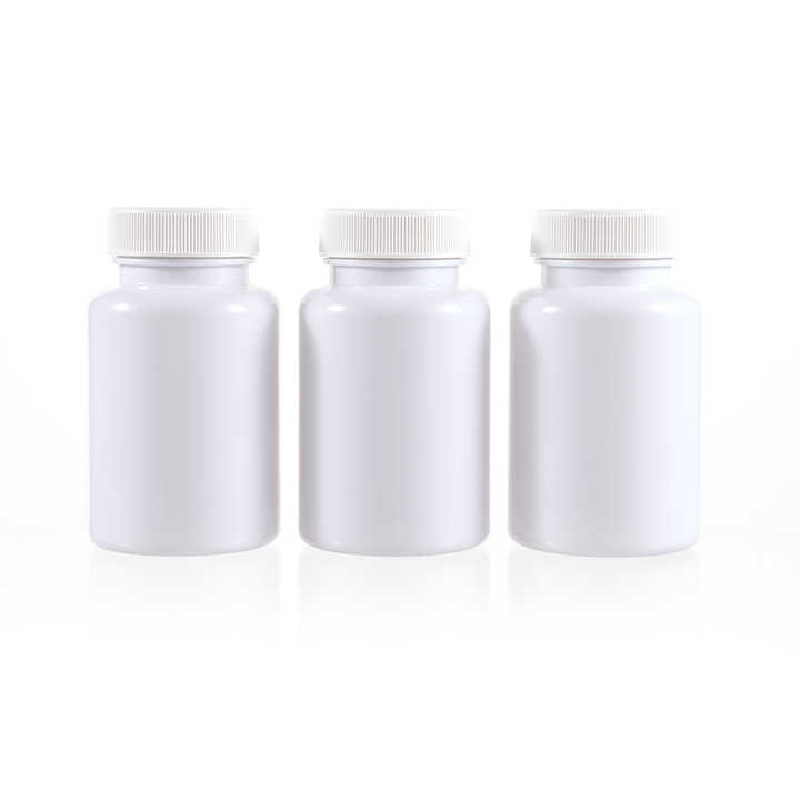 PET plastica 120cc bottiglie bianche capsula bottiglia di pillola medicina vitamina contenitore bottiglia con tappo a vite bianco