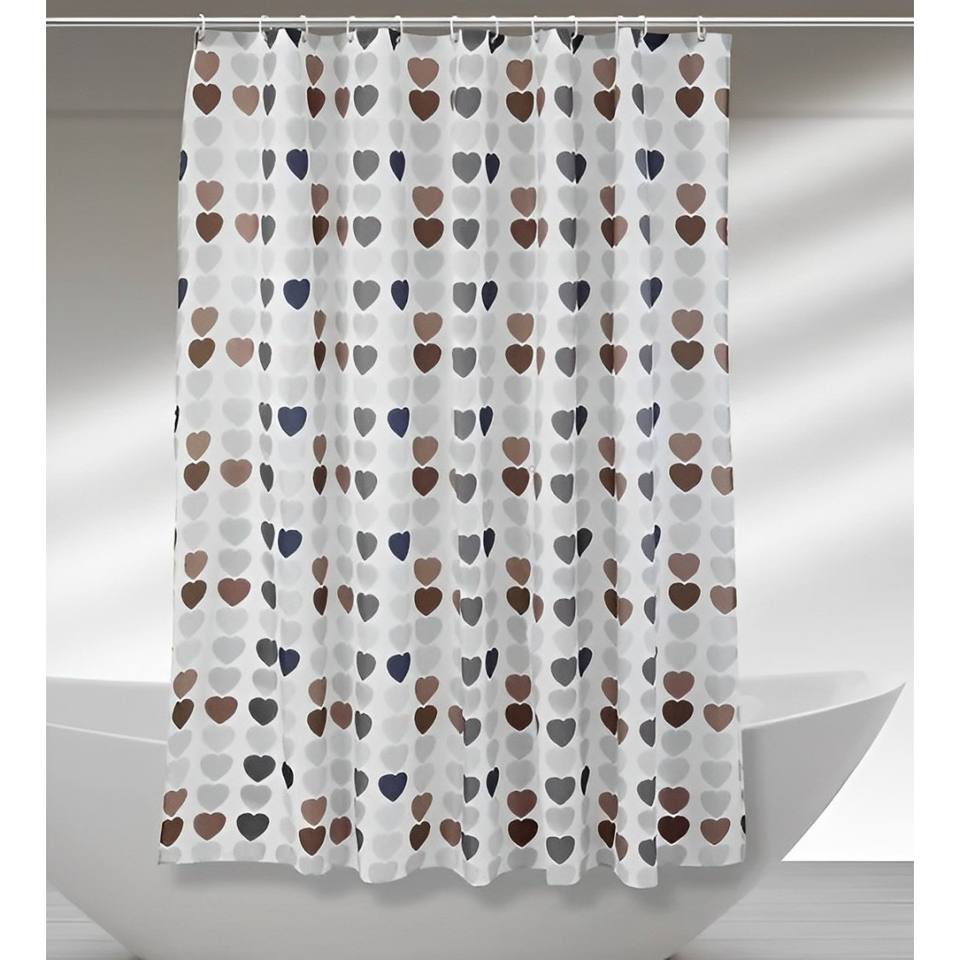 Tenda da Doccia Impermeabile in PEVA 180x200cm con Cuori Multicolore Design Moderno