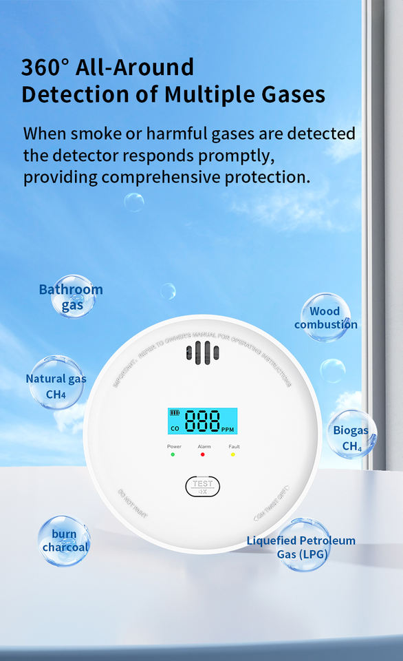 Rilevatore di Fumo e Monossido di Carbonio PGST 2 in 1 con Batteria a 10 Anni di Durata, Pulsante di Test e Display Digitale