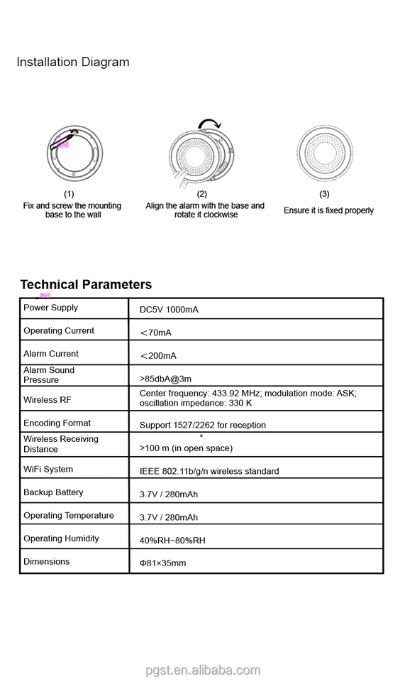 Caratteristica:Facile installazione, Portatile, Durevole, Telecomando app, Allarme sonoro, Interruttore del sensore